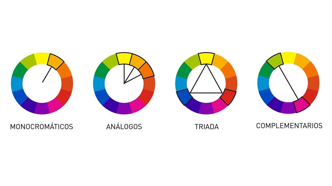 El círculo cromático es la herramienta principal para construir estas combinaciones, ya que permite identificar relaciones entre colores y planificar contrastes u armonías.
